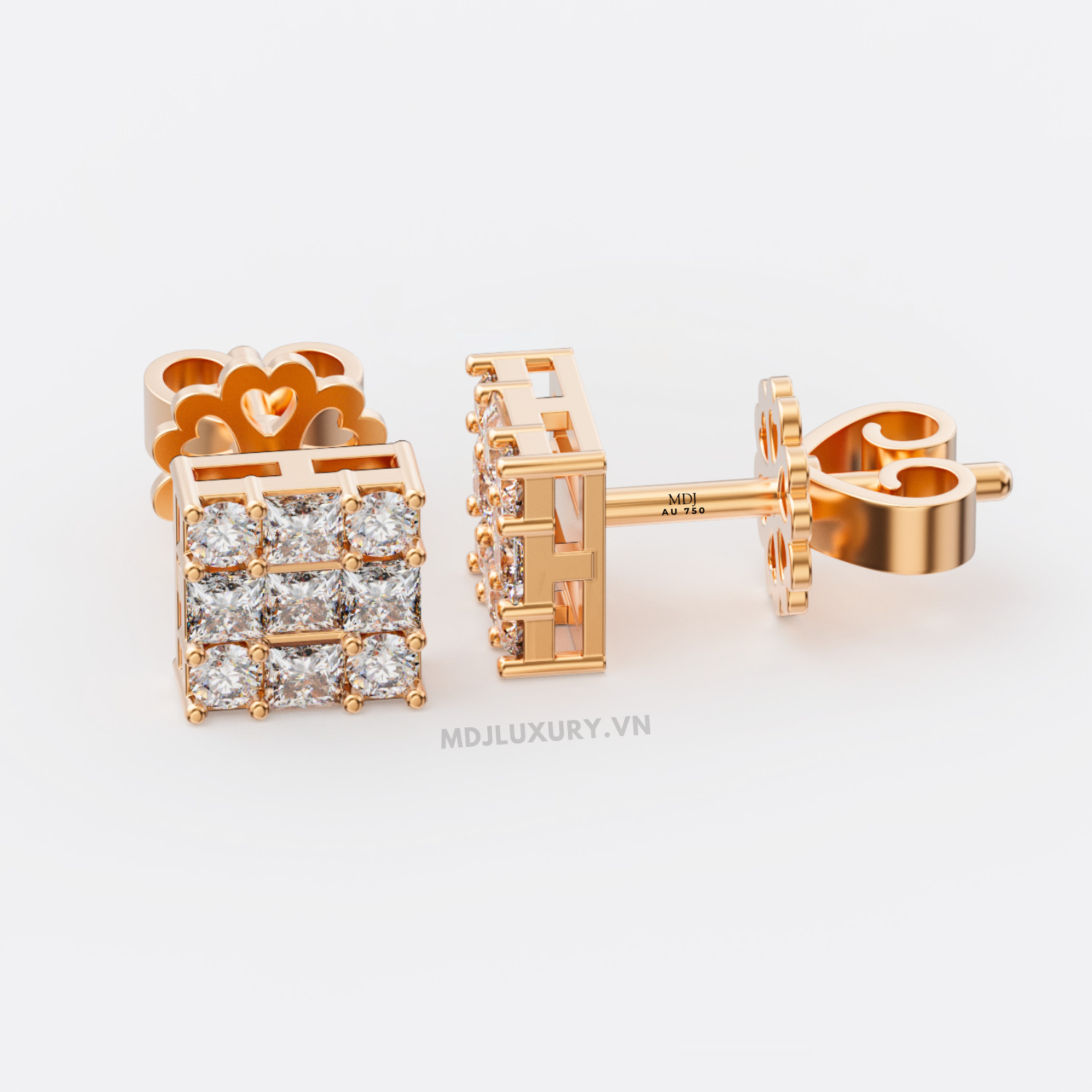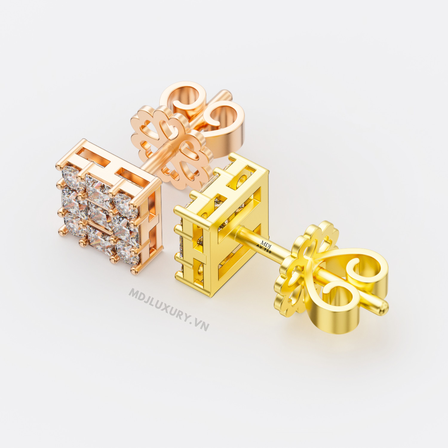 Bông Tai Nam mặt đá cao cấp đính kim cương HT37