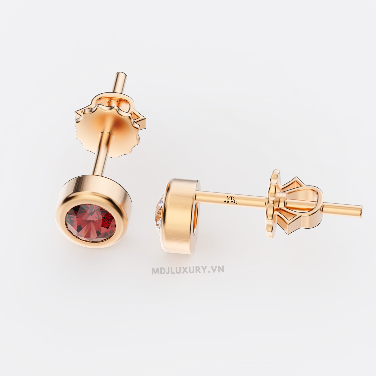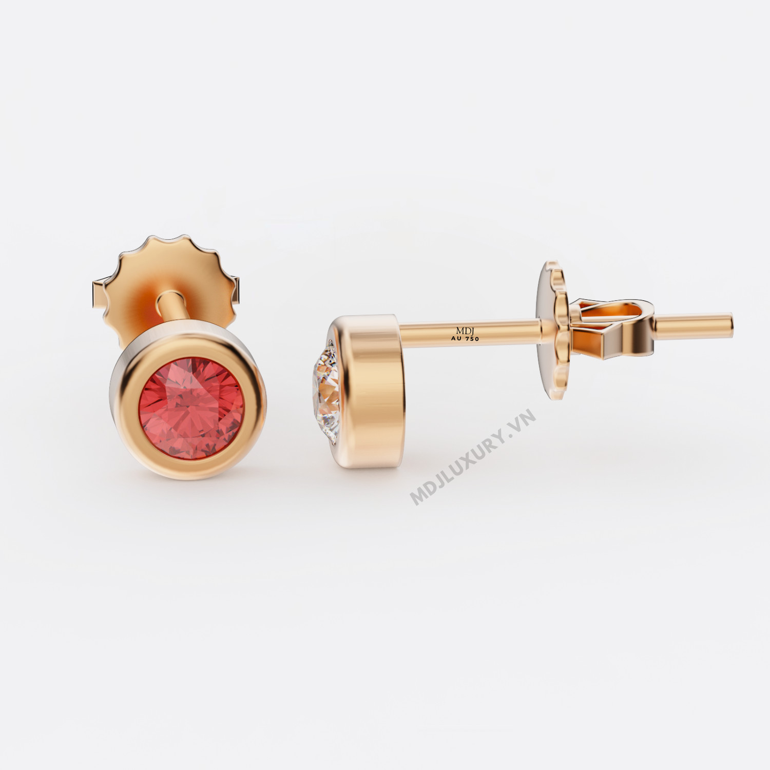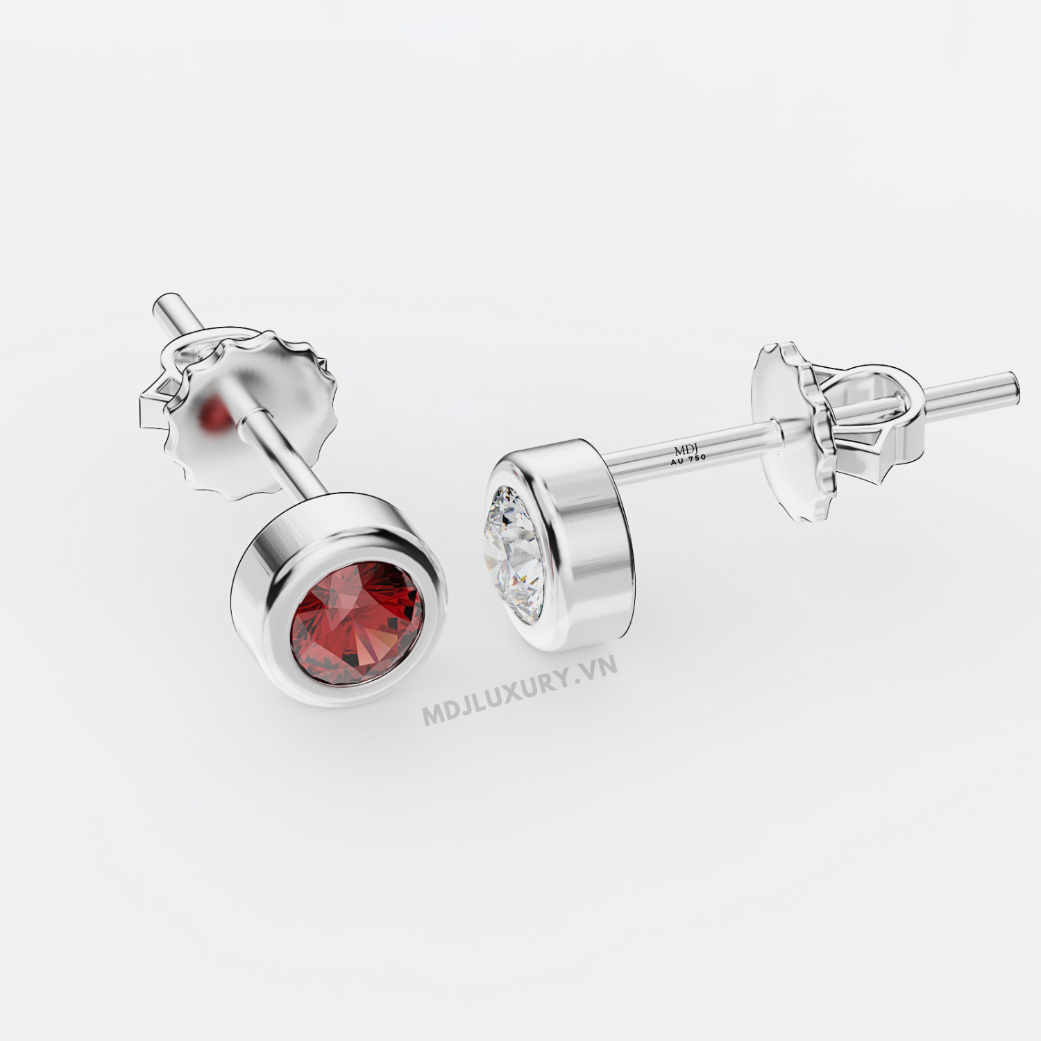Bông Tai Nam Vàng Trắng Đính Kim Cương ,Ruby MDJ-HT20