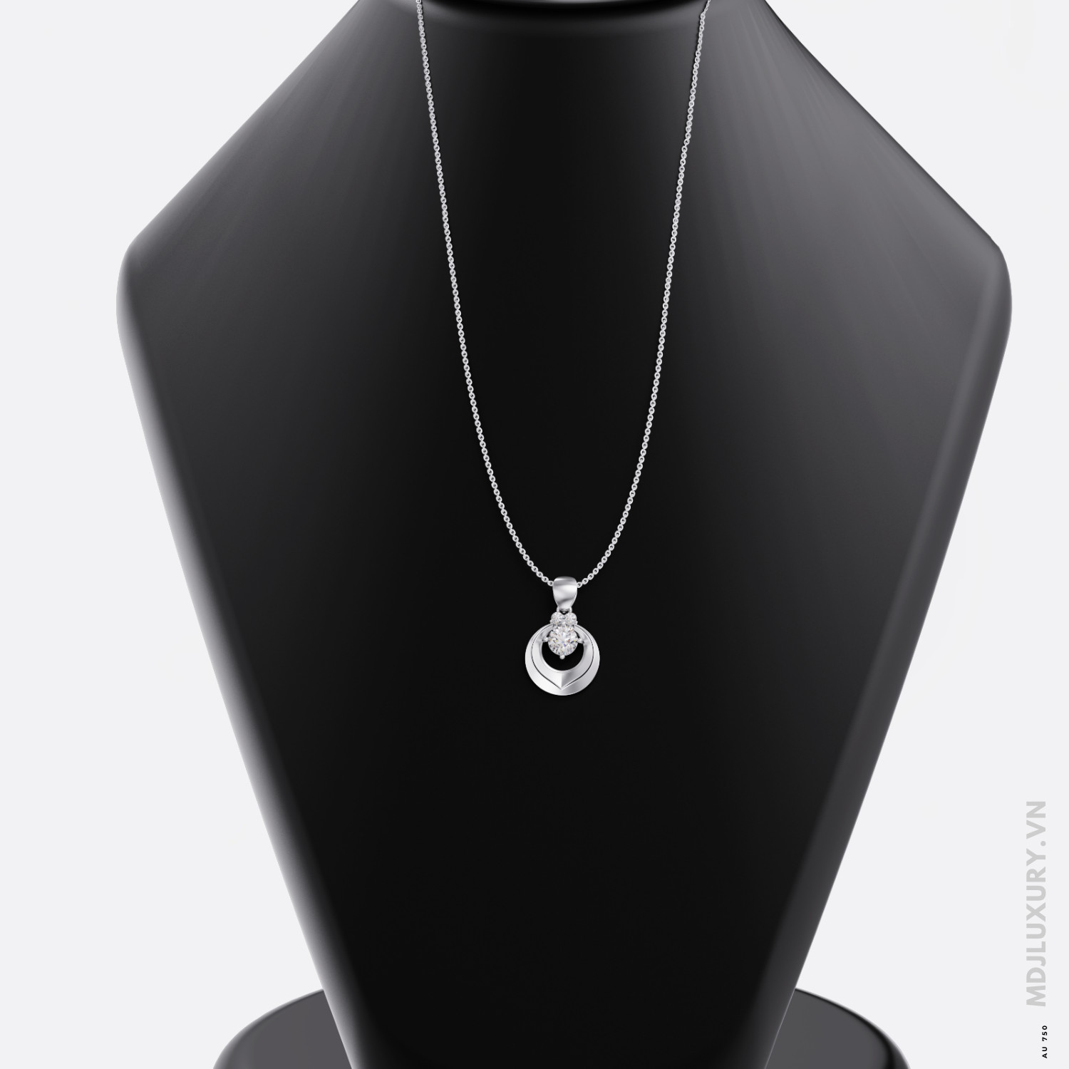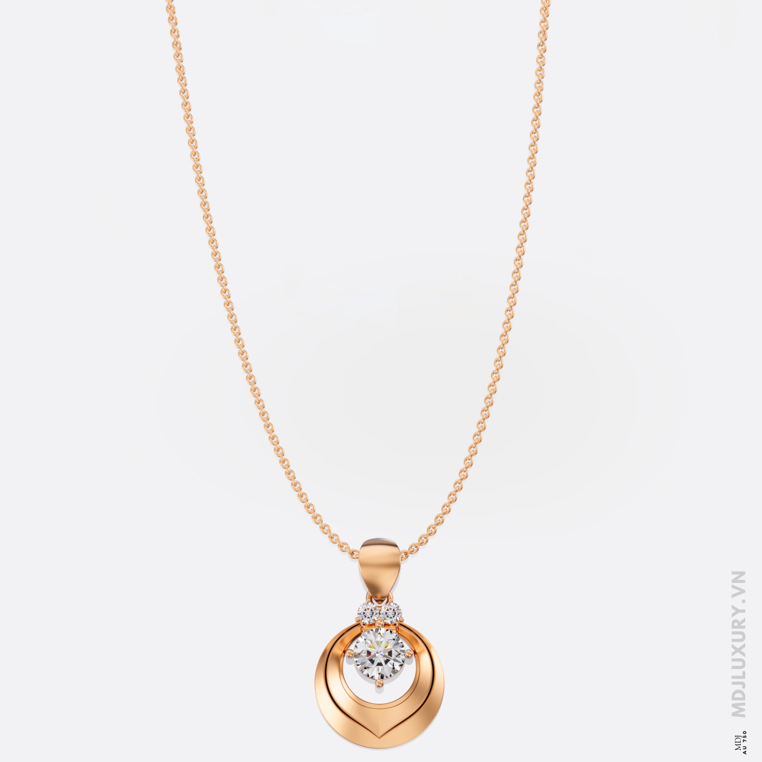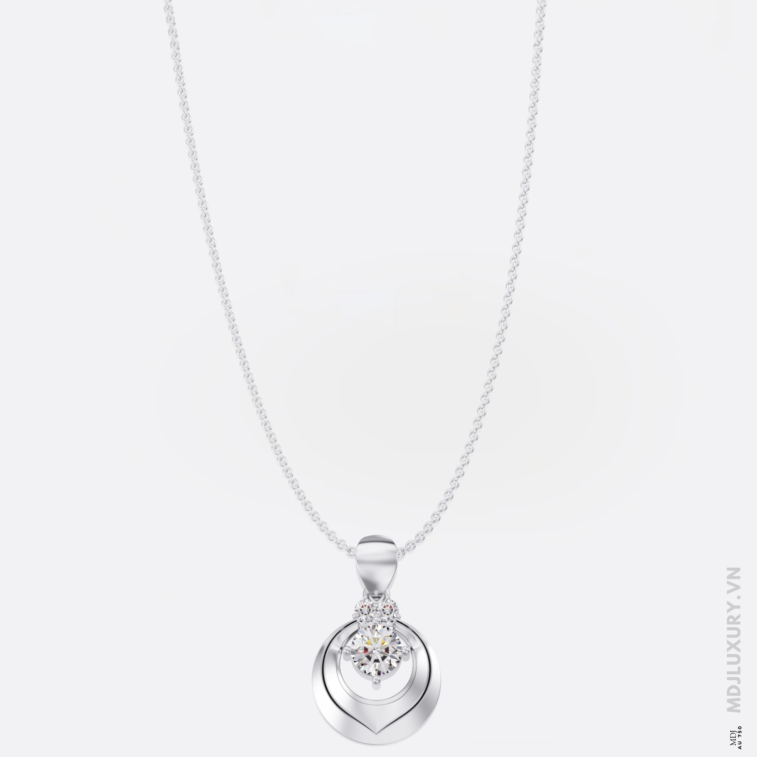 Mặt dây chuyền MDN10 được thiết kế theo phong cách minimalist – tối giản nhưng sang trọng. Trung tâm là viên kim cương Lab 6mm, được bao bọc bởi hai viên phụ 2.5mm ở hai bên, tạo nên bố cục cân đối và mềm mại. Từng viên kim cương được mài cắt chuẩn xác theo tiêu chuẩn 57 giác cắt (brilliant cut), giúp phản xạ ánh sáng tối đa – tỏa ra thứ ánh sáng lung linh tựa như vì sao giữa bầu trời đêm.