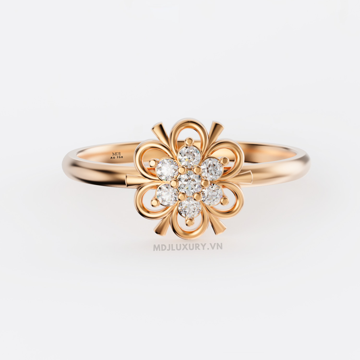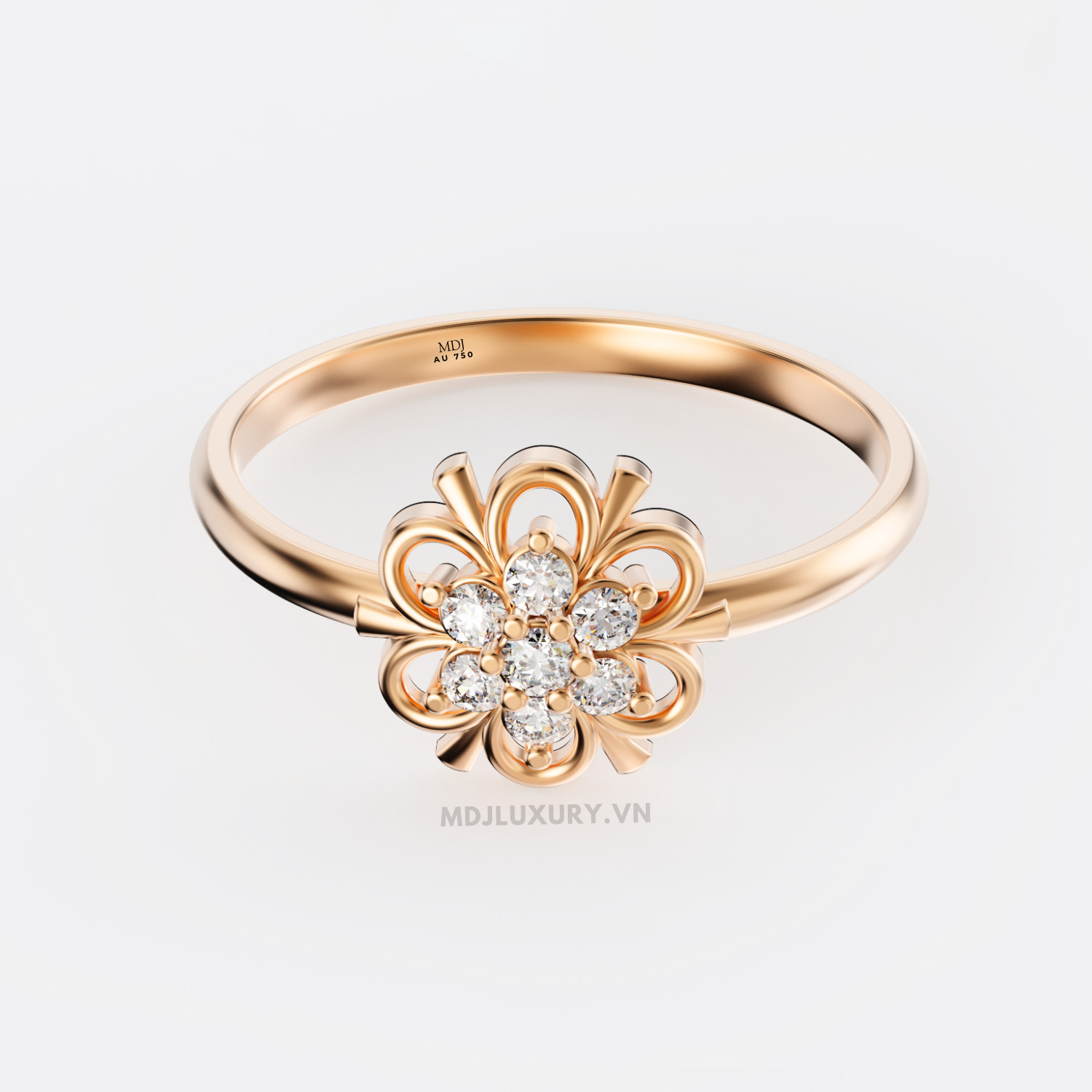 Nhẫn Cầu Hôn Vàng Hồng 14K Kim Cương MDJ Flower F028