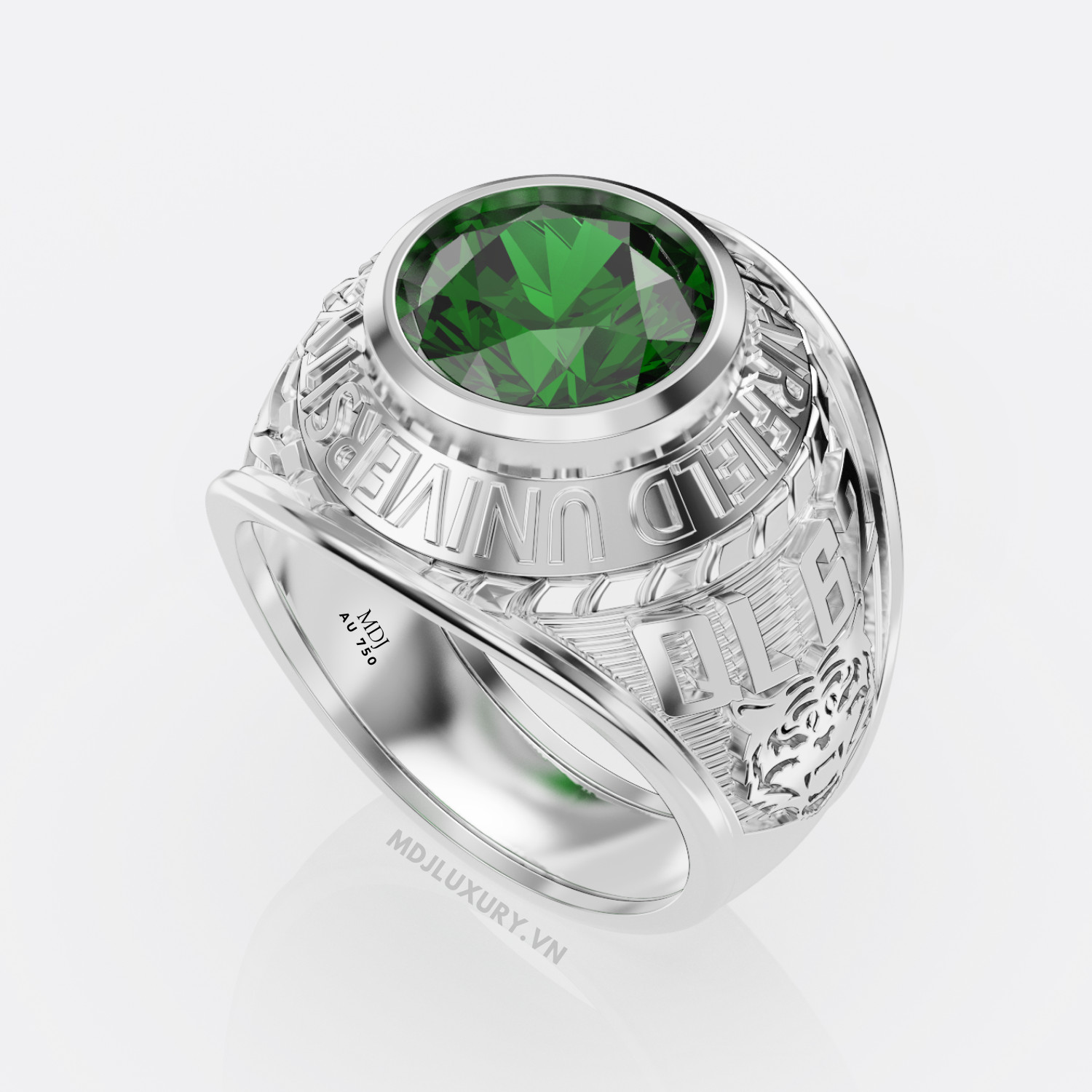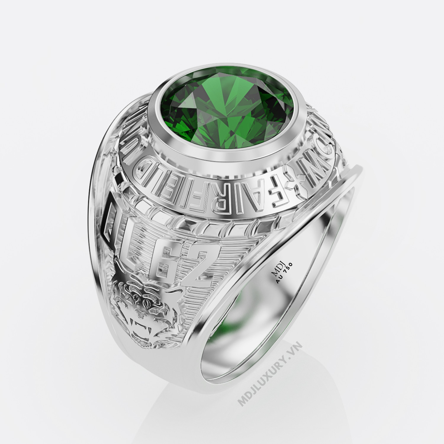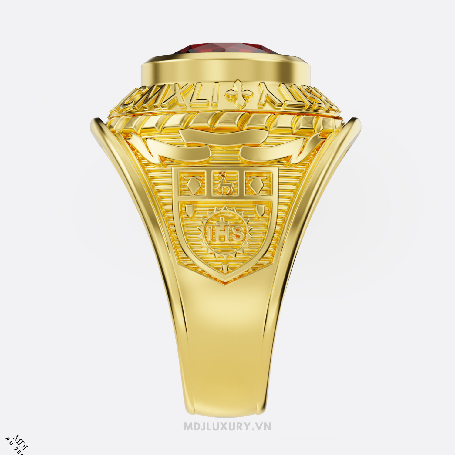 Chiếc nhẫn được chế tác theo phong cách nhẫn Mỹ nam, form dáng khỏe khoắn, các chi tiết chạm khắc tinh xảo. Viên Ruby thiên nhiên được đặt ở vị trí trung tâm, tỏa ra ánh sáng đỏ quyền lực, tượng trưng cho may mắn, tình yêu và sự thành công.