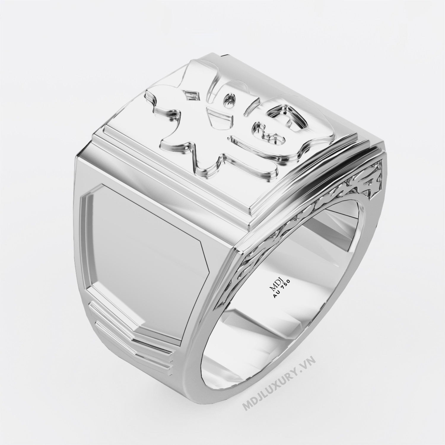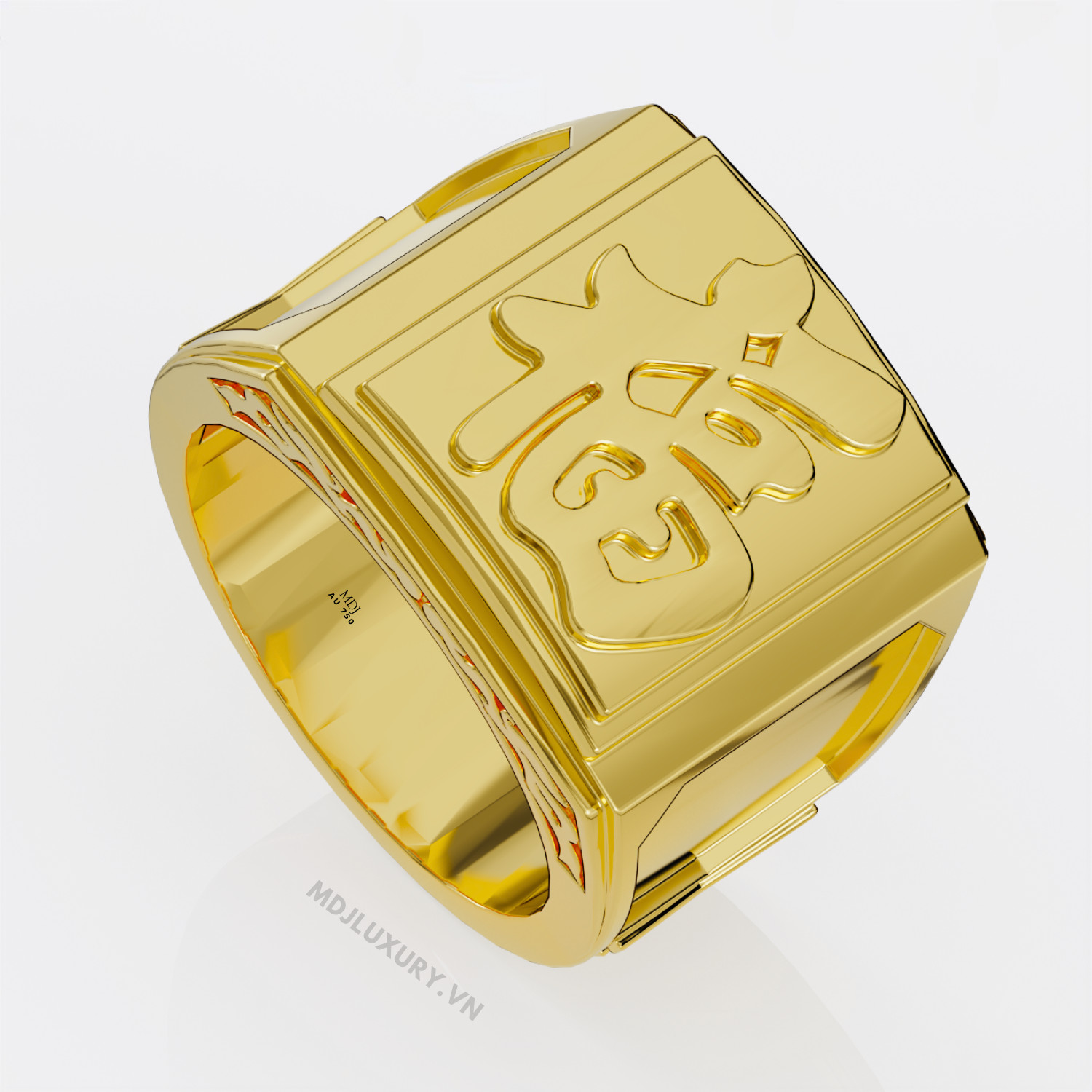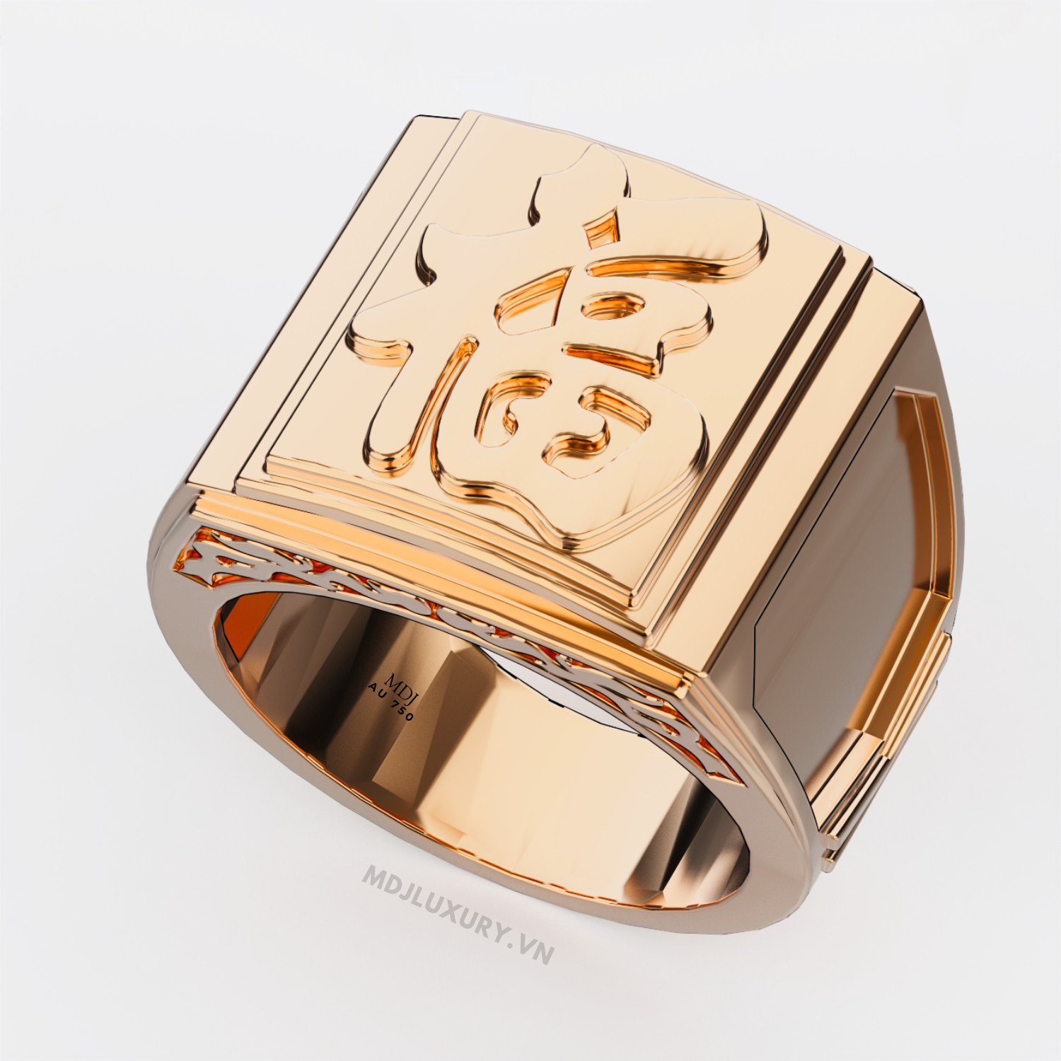 Nhẫn Nam Chữ Phúc vàng tây 14-18K MDJ NN280 Gắn đá quý thiên nhiên theo yêu cầu như Kim cương, Ruby, Sappphire, Topaz, Emerald ( Ngọc Lục Bảo).