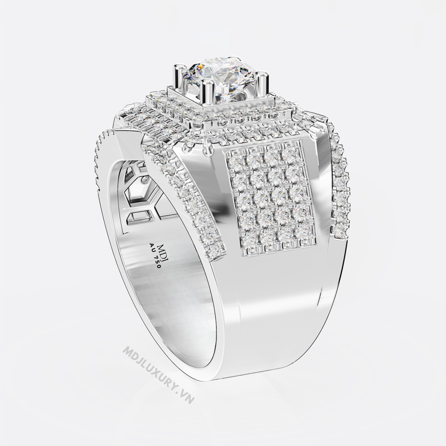 Nhẫn vàng tây nam 18K là dòng nhẫn được xưởng MDJ thiết kế dành riêng cho phái mạnh, với bố cục nhẫn lớn đính nhiều đá quý thiên nhiên và các loại đá màu thể hiện nam tính. Thiết kế tinh tế trong từng chi tiết chiếc nhẫn mang lại cho chủ nhân phong thái mạnh mẽ đầy quyền lực.Xưởng vàng bạc MDJ cam kết về chất lượng vàng và đá quý đính trên nhẫn vàng tây nam 18K. Quý khách có thể kiểm định trước khi thanh toán. Sản phẩm được bảo hành trọn đời tại MDJ LUXURY.