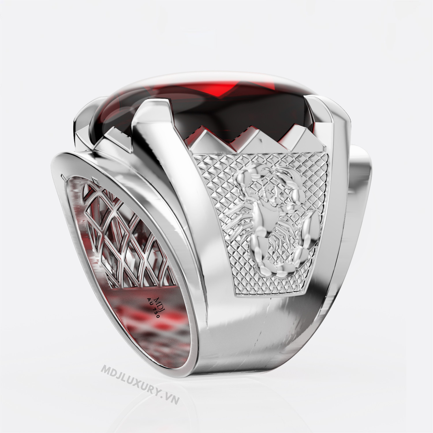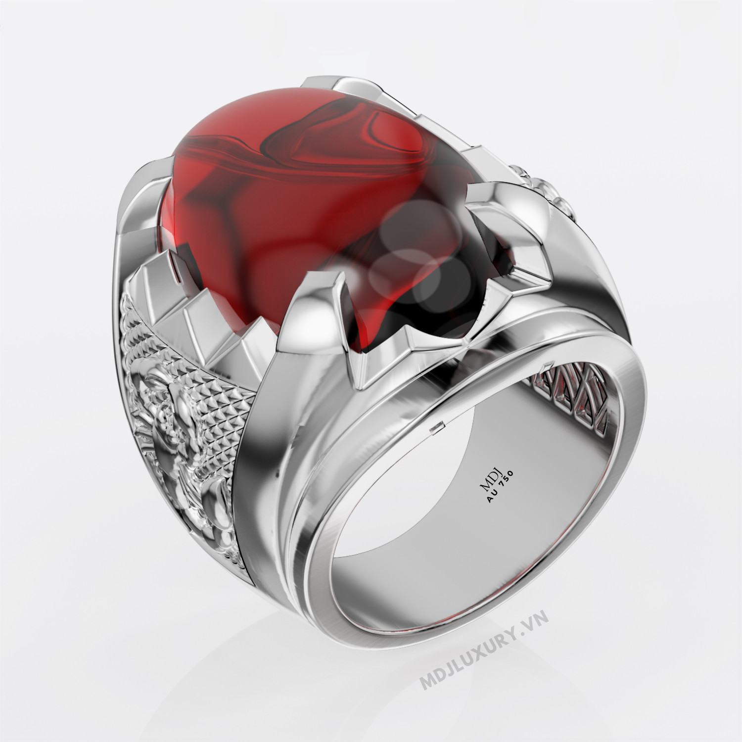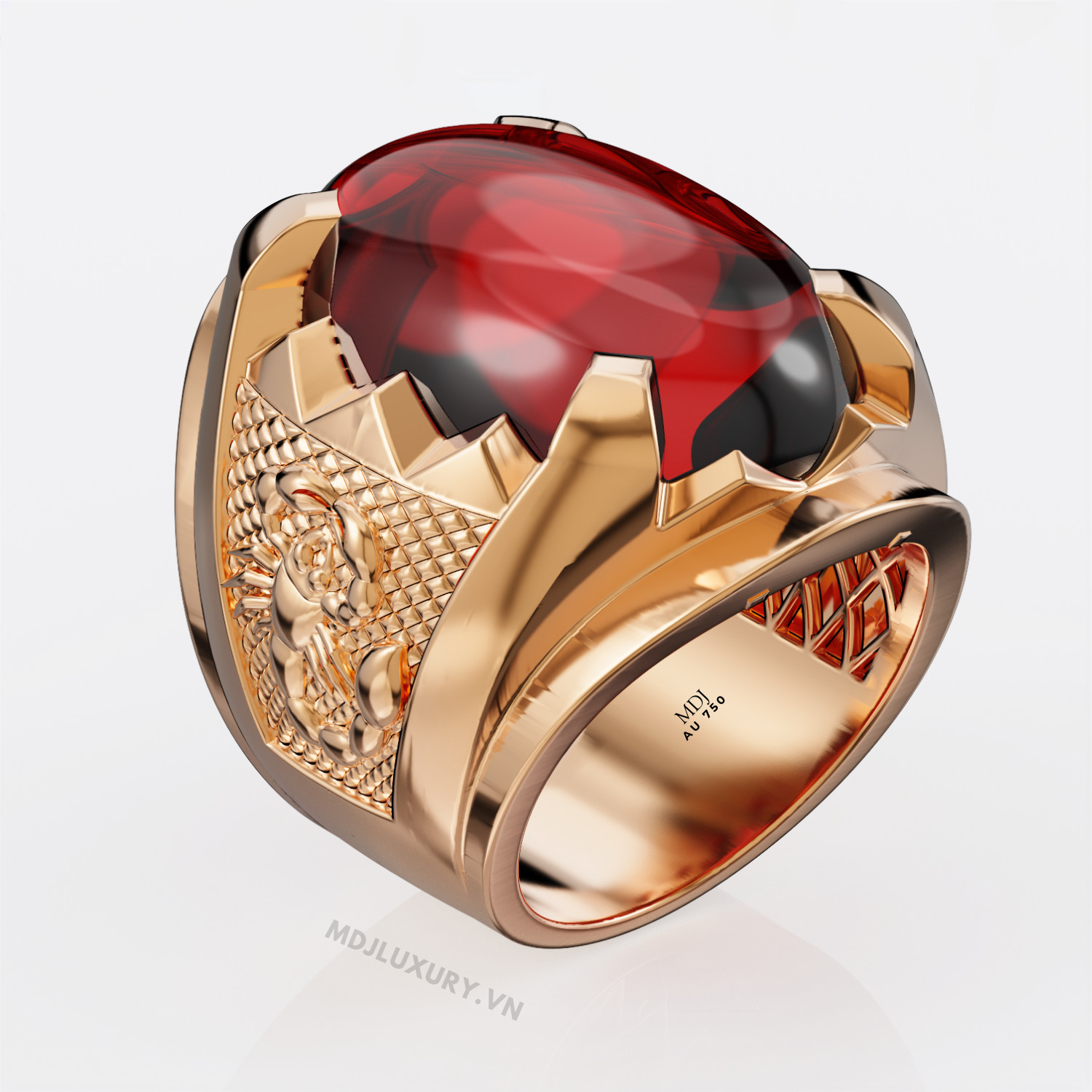 Nhẫn nam vàng hồng đá Ruby thiên nhiên chất lượng cao thiết kế 3D tinh xảo từng góc cạnh.