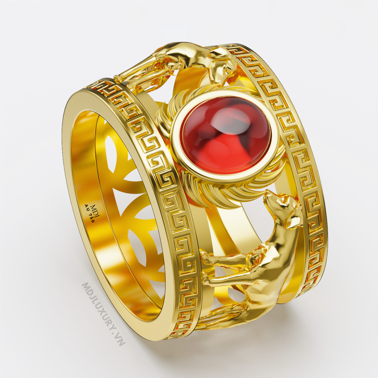 Nhẫn Vàng Nam Tuổi Tuất – Nhẫn Nam 18K NN268Gắn đá quý thiên nhiên theo yêu cầu như Kim cương, Ruby, Sappphire, Topaz, Emerald ( Ngọc Lục Bảo).
